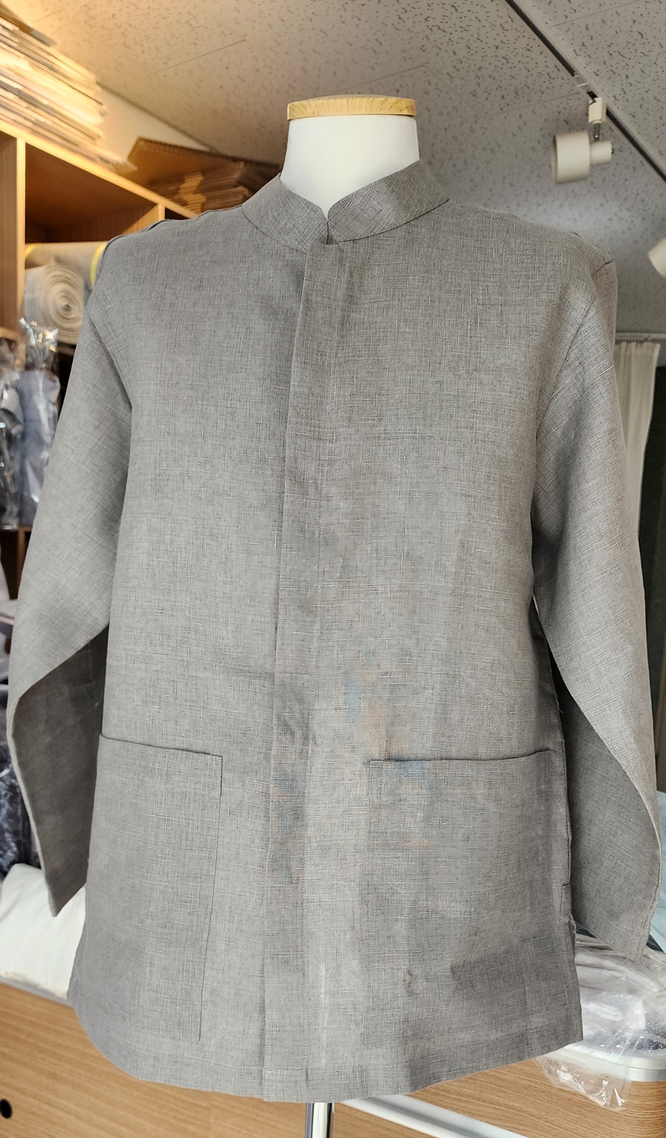 스님 여름차이나입니다. 깔끔한 디자인을 원하셔서 단추도 속단추해드리며